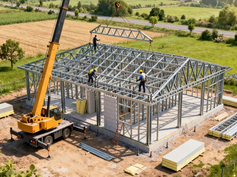 • Husbygning med grøn stålstrukturHusbygning med grøn stålstruktur