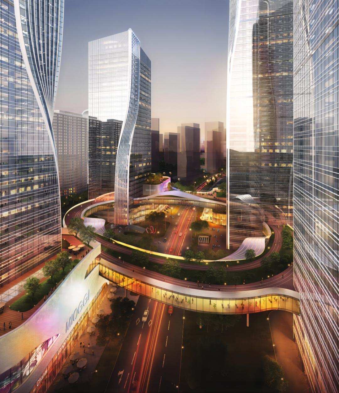Dette dobbelttårnkompleks dækker 57 hektar med et samlet gulvareal på 220.000 kvm, hvilket integrerer kontorer, hoteller, detailhandel, spisning og underholdning. Dens glasgardinvægge, pyntet med over 7.200 meter synkroniserede lysstrimler, skaber dynamiske mønstre på næsten 11.000 kvm og leverer en kraftig visuel påvirkning.