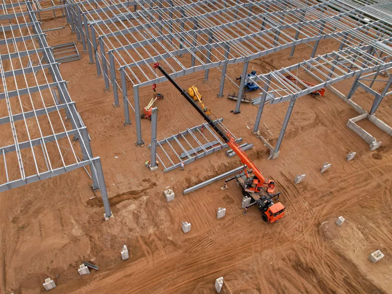 Stålkomponenterne, inklusive bjælker, søjler, seler og tagstænger, er præfabrikeret i en fabriksindstilling. Stål af høj kvalitet bruges, og komponenterne fremstilles til præcise specifikationer for at sikre, at de passer sammen nøjagtigt og sikkert under installationen. Dette kontrollerede miljø giver mulighed for strenge kvalitetskontrolforanstaltninger, hvilket sikrer komponenternes holdbarhed og pålidelighed.