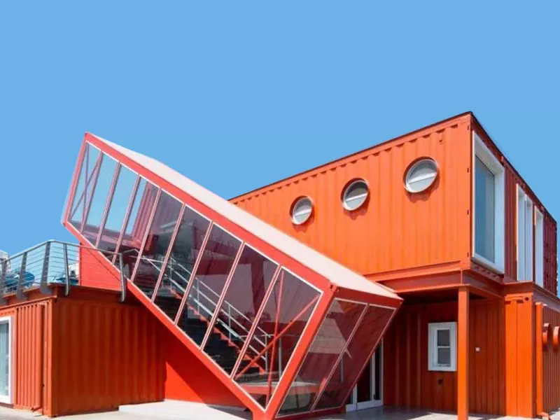 ● Beholdernes stålvægge og -lofter giver en unik industriel æstetik, der kan forstærkes med forskellige finish, såsom maling, vægbeklædning og belysningsarmaturer.