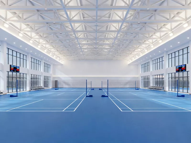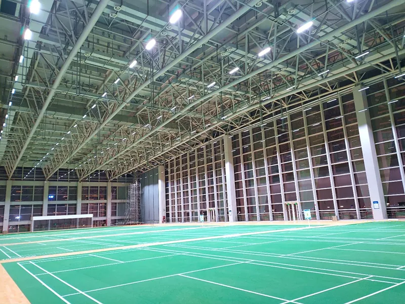 Under udviklingen af ​​moderne sportsbygninger er badmintonhal i stålstruktur efterhånden blevet den foretrukne strukturelle form i opførelsen af ​​badmintonanlæg. Hovedrammen bestående af stålbjælker og stålsøjler tager højde for strukturel styrke, æstetisk effekt og økonomisk ydeevne, hvilket demonstrerer standarderne for professionelle sportssteder. Som et lukket mødested skal en badmintonhal have et godt ventilationssystem og varmeisolerende effekt. En stålstruktureret badmintonhal kan bruge mere miljøvenlige og varmeisolerende vægmaterialer, og solpaneler kan installeres på taget for at generere elektricitet til ventilationssystemet.